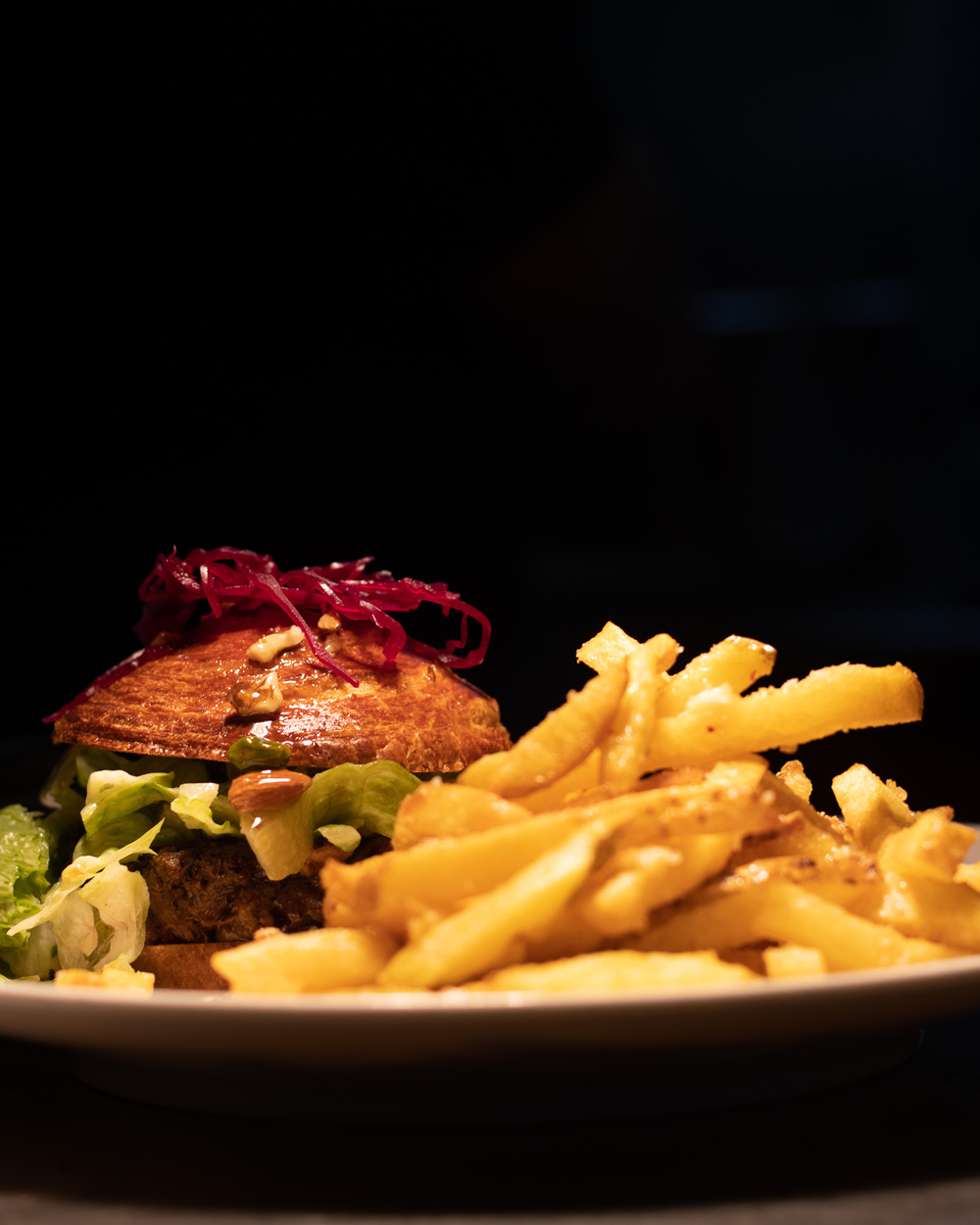 Carpaccio de bœuf, coupeaux de parmesan & frites de l’Atelier